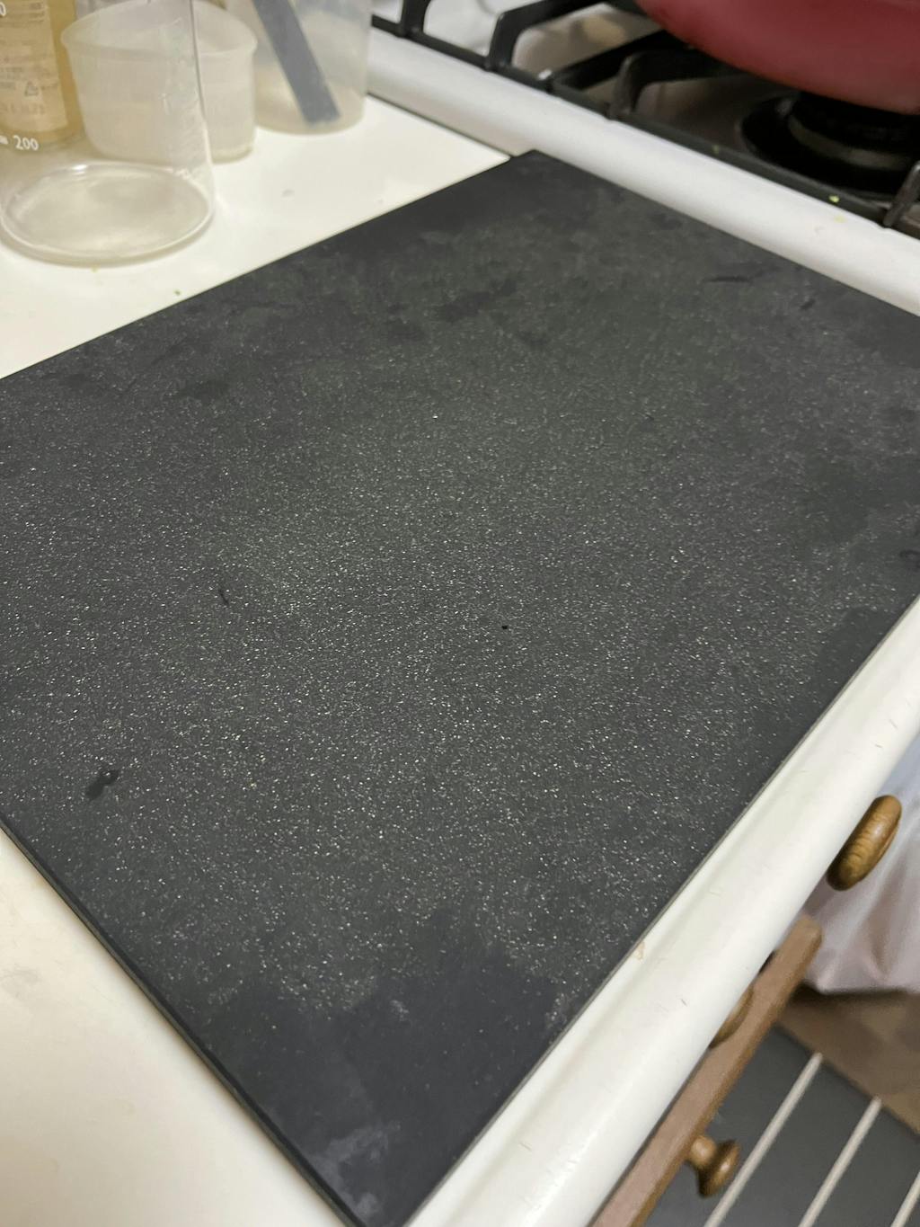 ブラックカッティングボードカラー ブラック サイズ 330mm×240mm×13mm 重量 1,315g 材質 合成ゴム(木粉入り) 耐熱温度 100℃ 生産国 日本 注意事項 ・火のそばに置いたり、加熱したフライパン等を乗せると、軟化または変形することがあります。