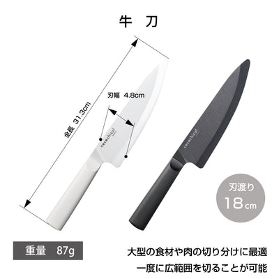 リンゴやレタスなどの切り口が変色しにくく、サラダやデザートなどをキレイに仕上げることができます。また、食材に金属の嫌な臭いがつきません。● 牛刀(西洋包丁)