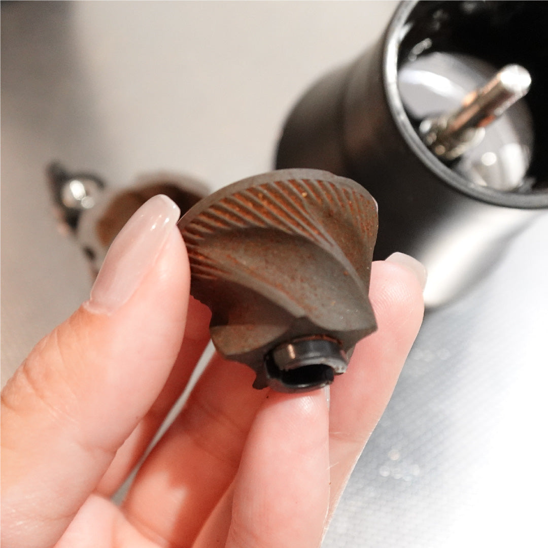 ・コーヒー豆の油分が臼に付着した場合は、薄めた中性洗剤にて洗浄し、十分にすすぎ洗いしてください。