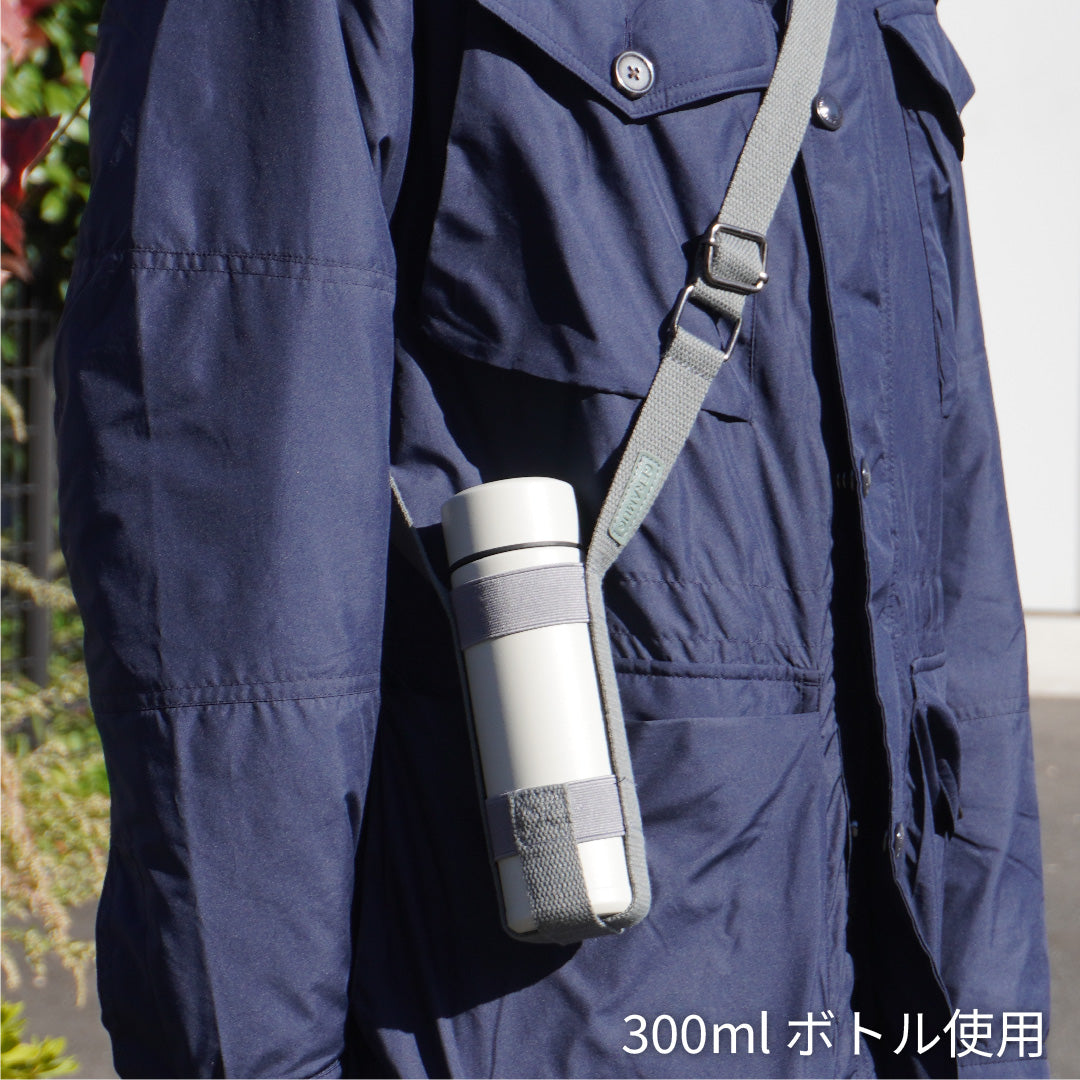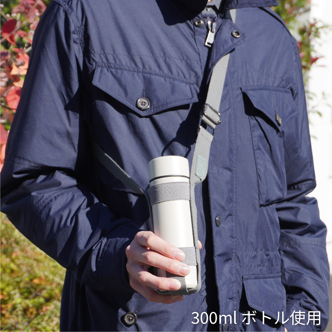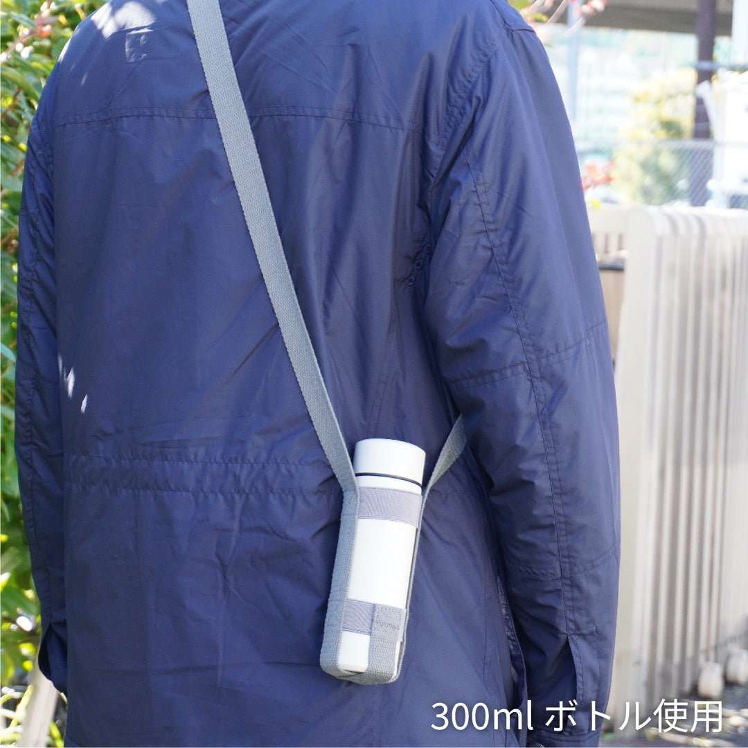 ゴム製のベルト仕様のため、300mlと500mlのマグボトルどちらにもフィット。
