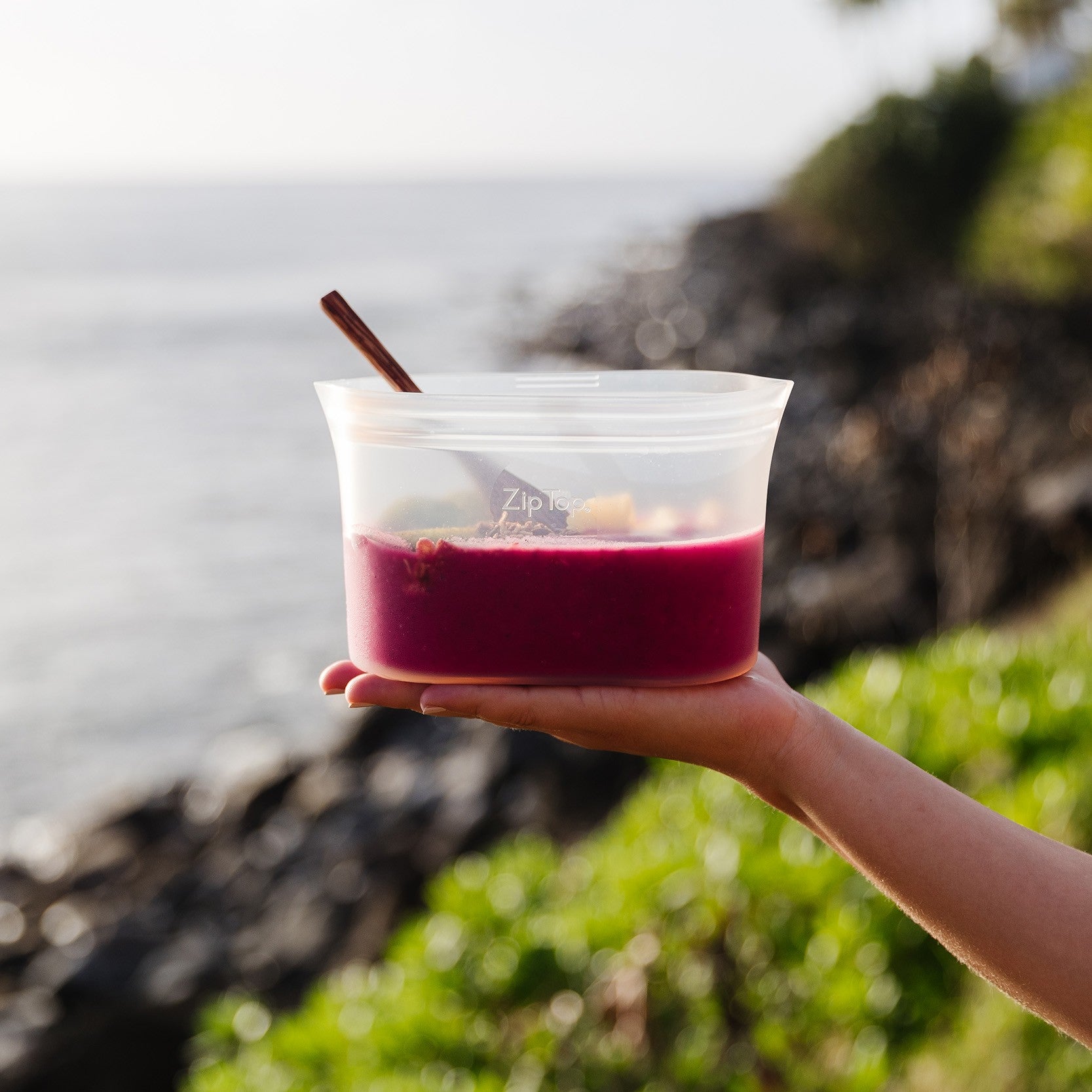 商品名 ZIP TOP(ジップトップ)ディッシュ S カラー frost(フロスト)/gray(グレー) サイズ 200mm×75mm×103mm 重量 132g 容量 473ml 材質 シリコーンゴム 生産国 アメリカ 注意事項 ※本製品は密封・密閉容器ではございません。食材等を入れて保存する際は、立てた状態で保存をお願いいたします。また容器の上から圧迫があった場合や容器が倒れた衝撃で容器の口が開いてしまう可能性がございます。