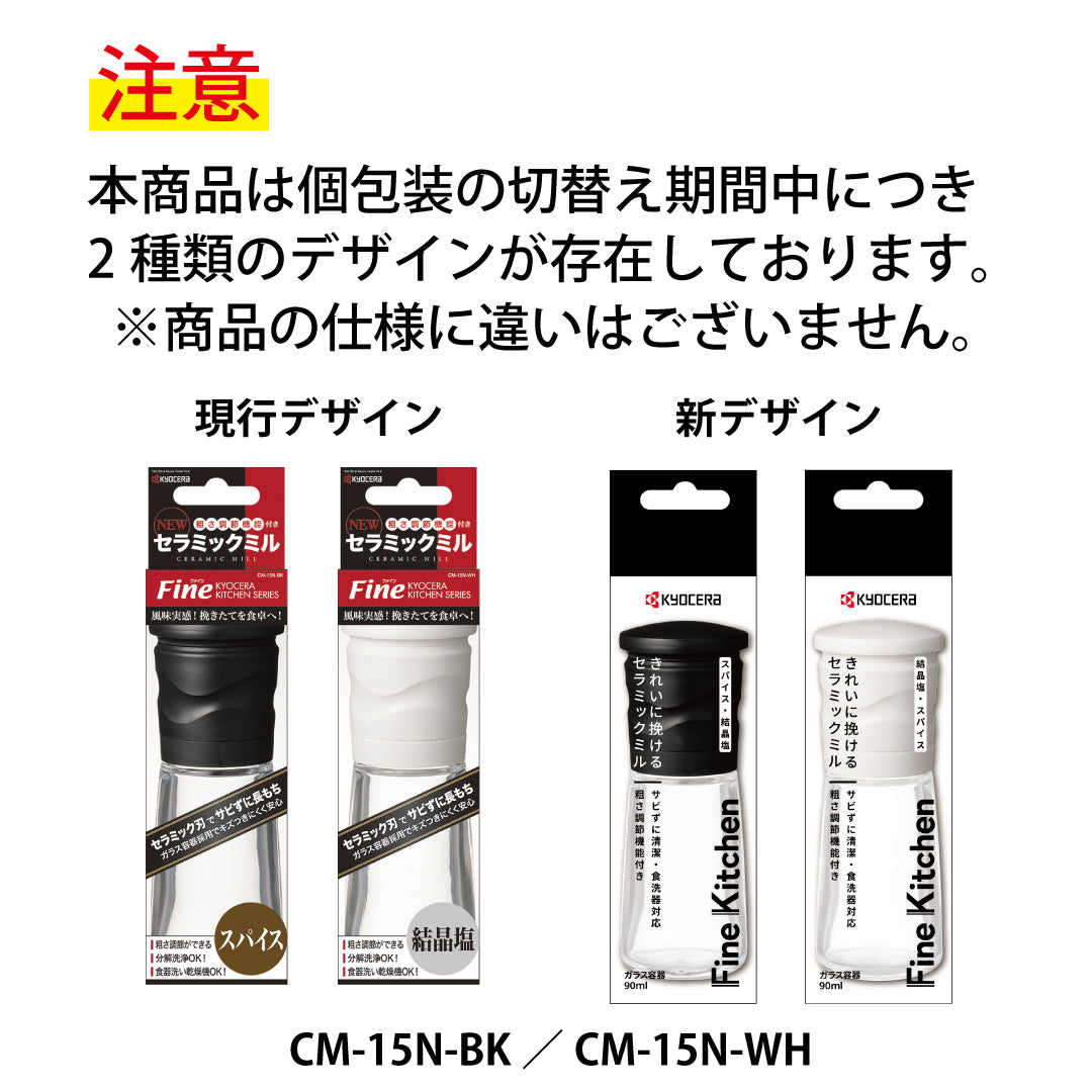 商品名 セラミック ミル(スパイス・結晶塩用) カラー ブラック サイズ φ51mm×137mm 容量 90ml 重量 190g 材質 (ボトル)ガラス